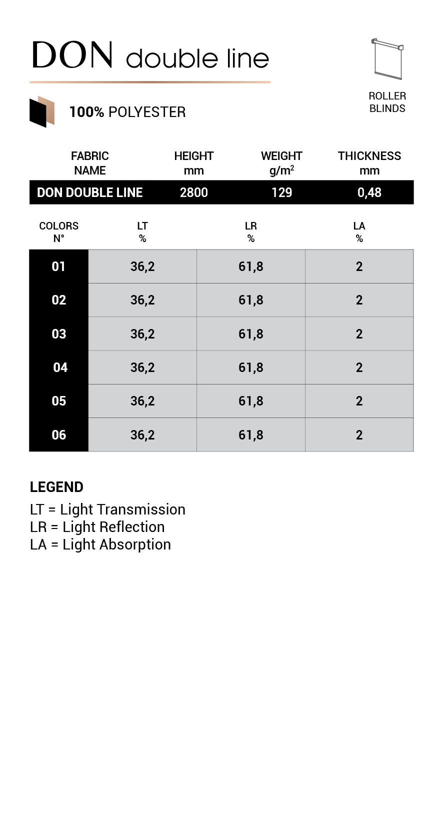 • Roller blinds